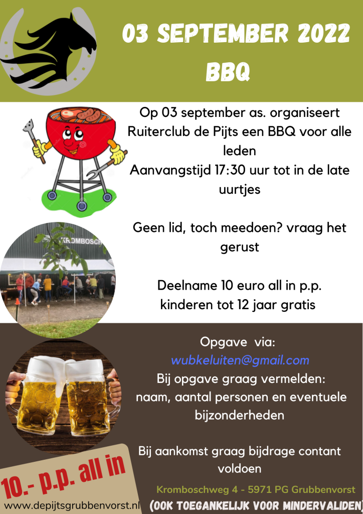 Op 3 september as. organiseert Ruiterclub de Pijts een BBQ voor alle leden
